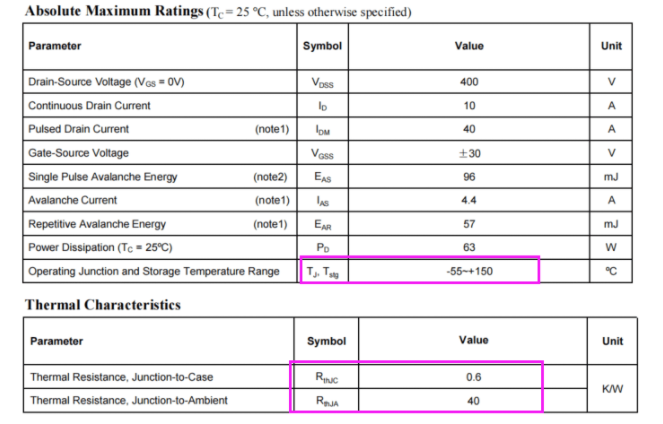 c.TC(外殼溫度)Case Temperature):MOSFET外殼表面的溫度。 計算結溫需要用到熱阻參數,下面介紹熱阻參數。