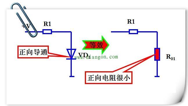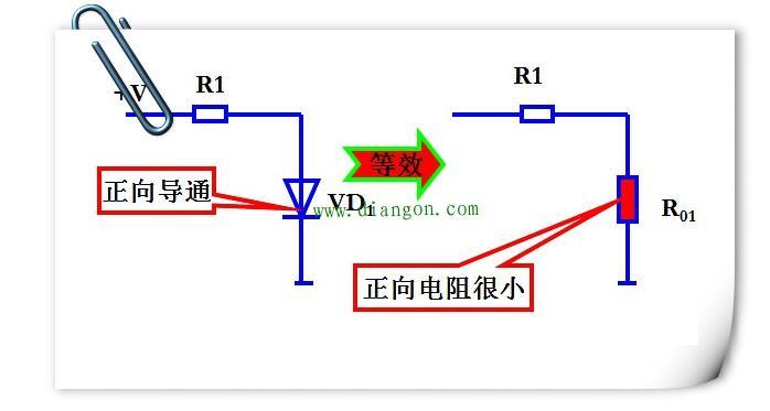 當二極管的正向電流變化時(shí),其正向電阻也在發(fā)生微小的變化,正向電流愈大,正向電阻愈小,反之則大。
